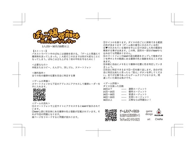 「ばねこはじめてのゲームマーケットの巻」は、爆発物の位置を当てる、紙ペンゲームのフリーゲームです。
