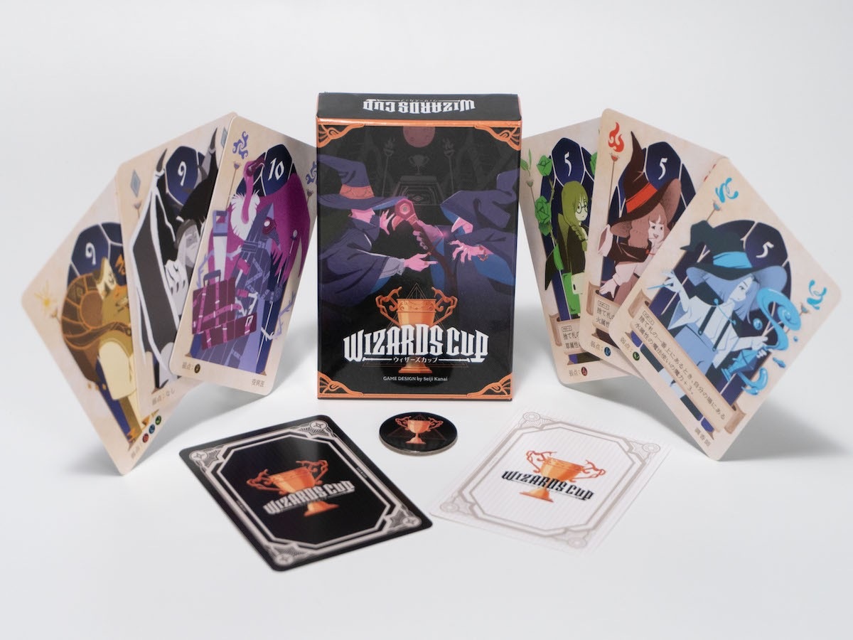 「ウィザーズカップ」は、6枚のカード構成で、魔法の軍団を形成する2人用カードゲームです。