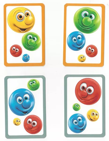赤、緑、青、黄の4色の泡が描かれた24枚のカードがテーブルに並べられます。