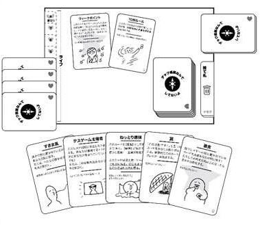 このゲームは、「テストプレイなんてしてないよ」のカードで自分だけのデック(デッキ)を作って戦う「デック構築」ゲームです。