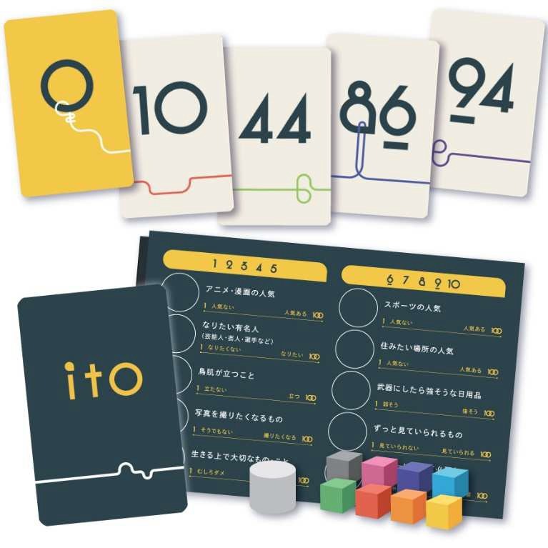 「ito クラシック」は、自分の手札の数字をお題に沿った言葉でたとえて、小さい順に並べる協力ゲームです。