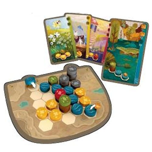 このゲームでは、色のついたトークンを配置して風景を作り、動物たちの生息地を作ります。