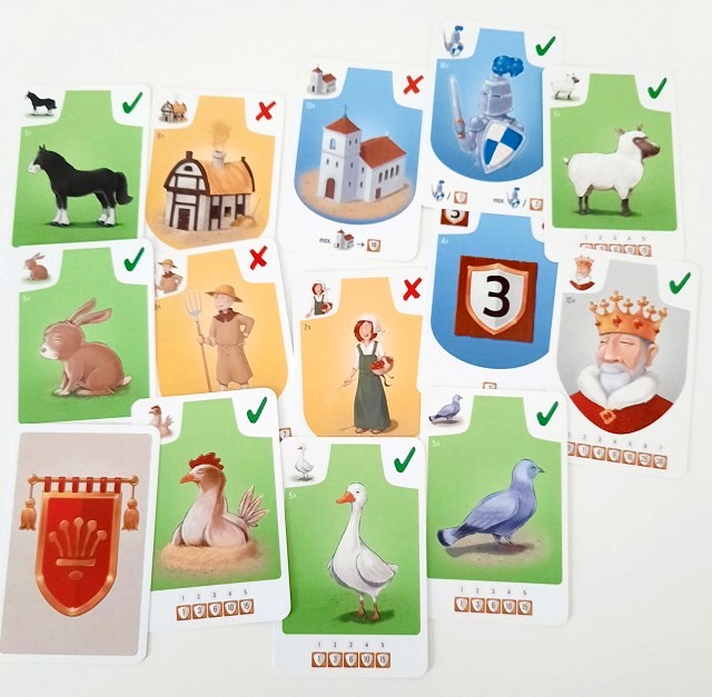いくつかのカードには×印がついており、これらのカードは最初の得点の後に捨て札となります。