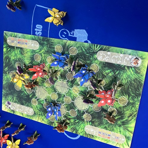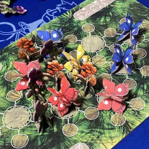 「ピースフルガーデン」は、花を配置して蝶の近くにある場所を支配し、最も価値のある蝶を引き寄せようとする2人用軽快な対戦ゲームです。