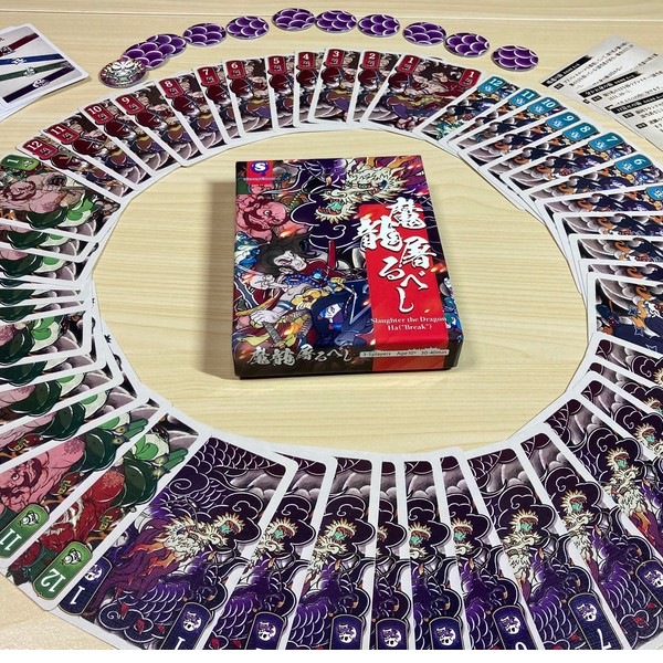 「魔龍、屠るべし」は、忍術を駆使して龍を狩る、トリックテイキングゲームです。