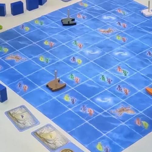 「モルディビア」は、折りたたみ式の布製ゲームボードで魚を集めて売るゲームです。