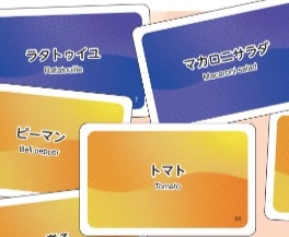 このゲームでは、限られた時間の中で、食材と特徴が書かれたカードの山から、提示された料理と一致するカードを探し出し、それがどの料理なのかを当ててもらいます。