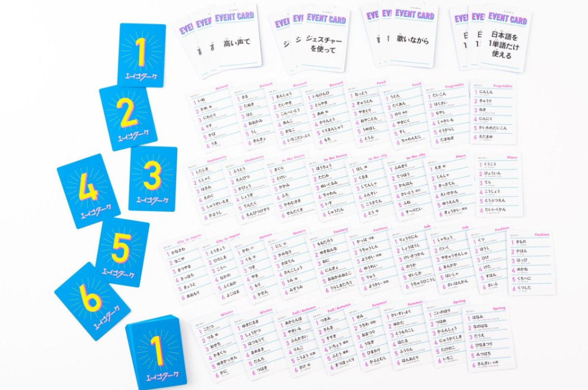 「エイゴーダケ」は、お題カードの日本語を英語だけで説明するゲームです。