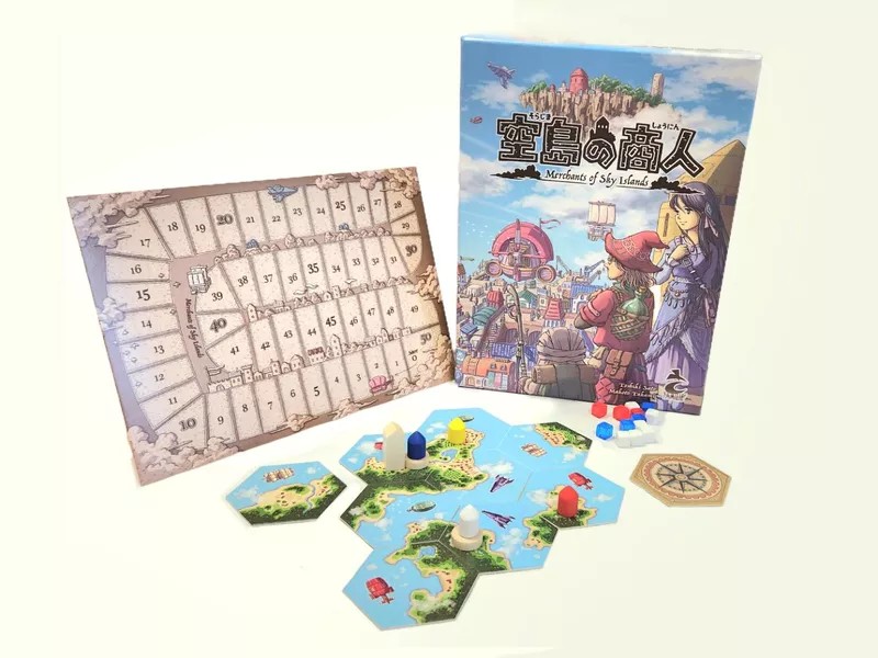 「空島の商人」は、資源を獲得して交易を行い、その地域の発展を目指す、エリア獲得とタイル配置のゲームです。