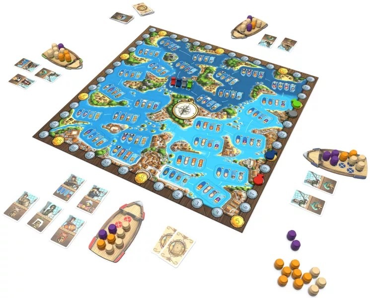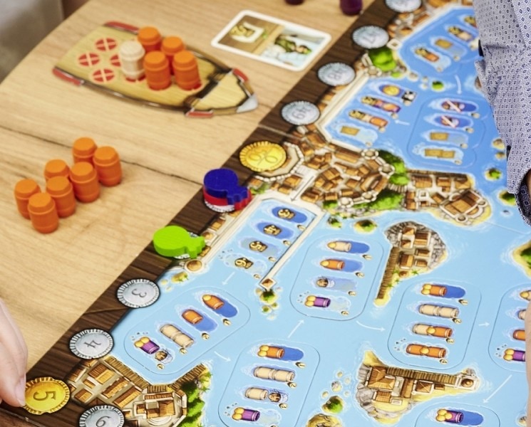「樽いっぱいで進め」は、よりよいの停泊地を奪い合う、中世の海運をテーマにしたゲームです。