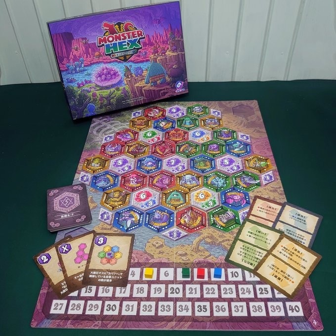 「モンスターヘクス」は、4つの勢力が支配する魔界で、自軍の部隊を盤上に配置し、8カ所の秘跡にある魔石を奪い合うエリアマジョリティ(陣取り)です。