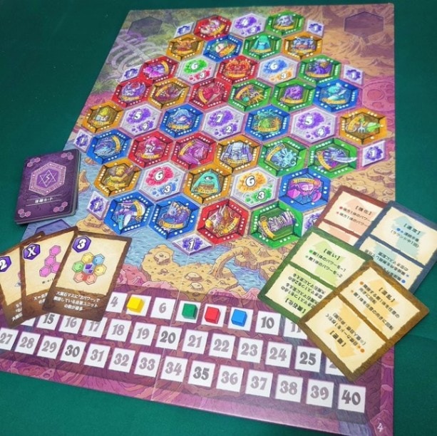 自軍の部隊であるユニットタイル(以下、ユニット)をプレイボード(以下、ボード)上に配置していき、8カ所の秘跡にある魔石(得点)を敵対する勢力と奪い合います。