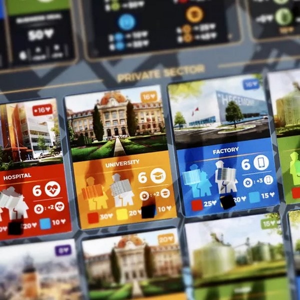 「ヘゲモニー」は、架空の国家における社会経済グループの役割を担う、非対称政治経済カード主導型ボードゲームです。