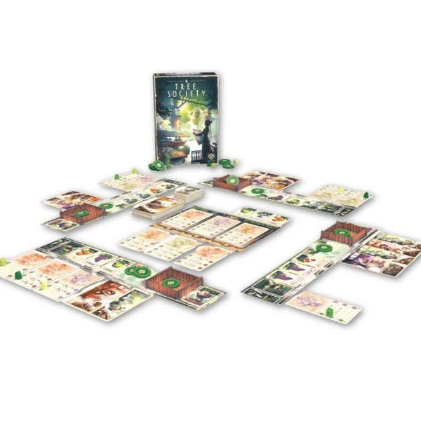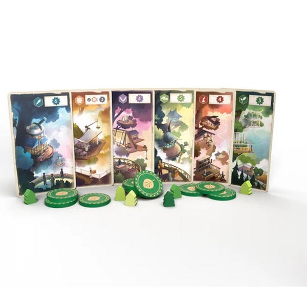 「ツリーソサイエティ」は、果物を交易して、ギルドを建設ならびに成長させ、樹上にある都市を発展させるボードゲームです。