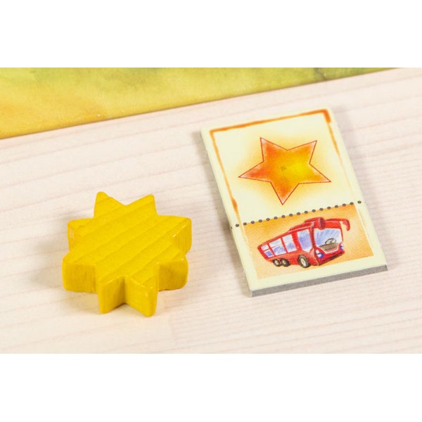 袋から、自由に通行できる周遊チケットを引いたら、自分の目的地まで、何マスでも好きなコースでバスを進められます。
