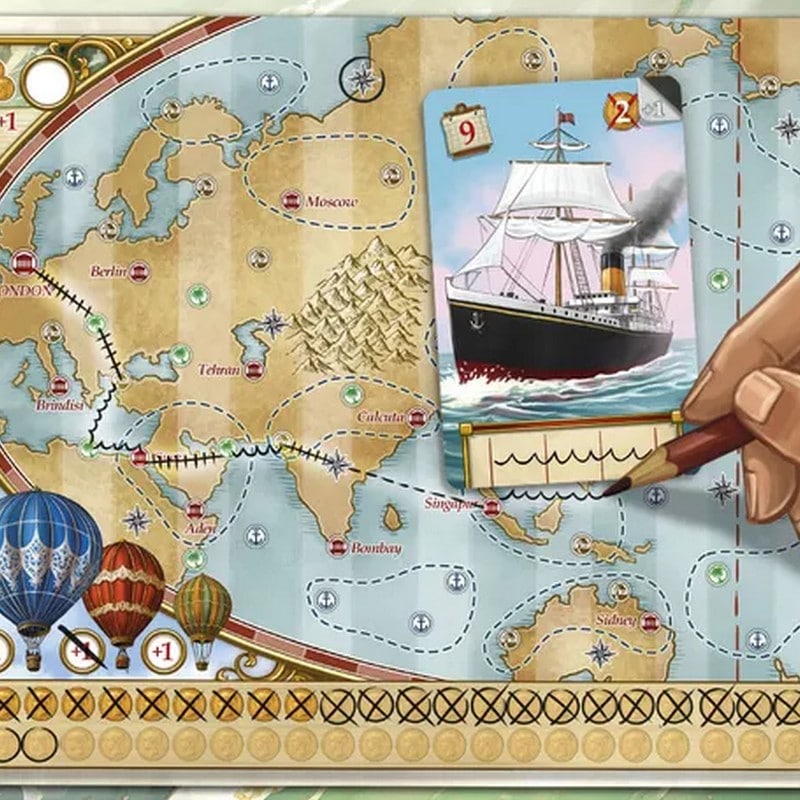 「80日間世界一周」は、80日で、船や気球や列車で最良のルートを賢く選択する、驚異の旅を再現する紙ペンゲームです。