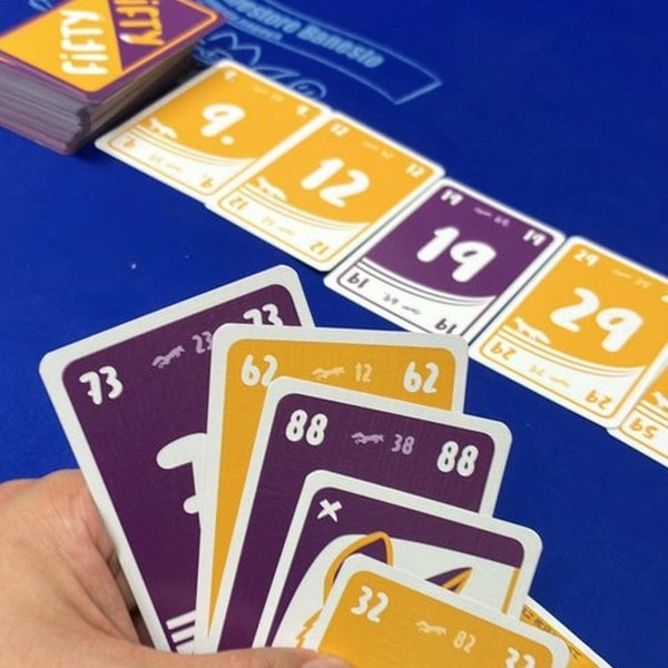 最後に出たカードとの差がちょうど50であるカードが手札にあれば、自分の番でなくてもすぐに出すことができます。この後は全員がパスカードしか出せなくなり、パスできなかった人が場に出たカードを全部失点として引き取らされてしまうでしょう。