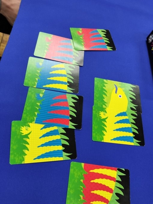 場にめくられたカードの中で「つながる!!」と気づいたプレイヤーは2枚の内1枚を急いで取ります!!