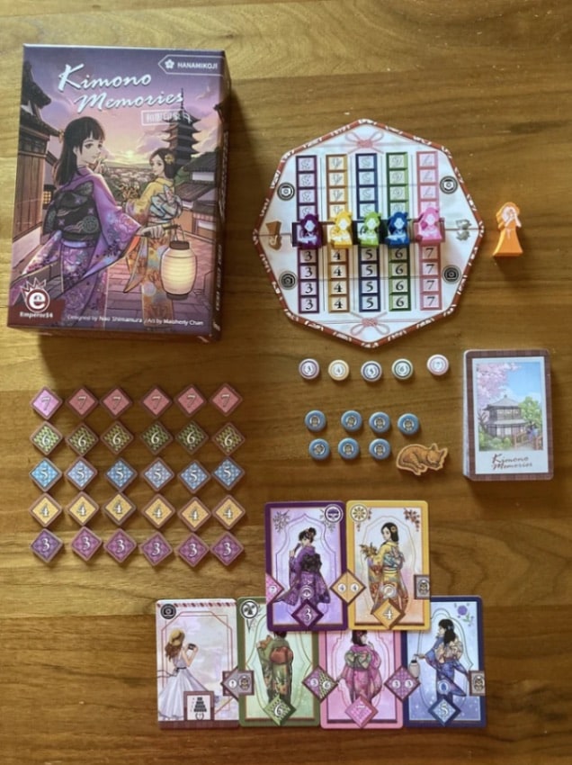 「キモノ・メモリーズ/和服印象」は、京都の街並みを舞台に、見習いカメラマンとして着物美人を撮影する、カード配置の2人用ゲームです。