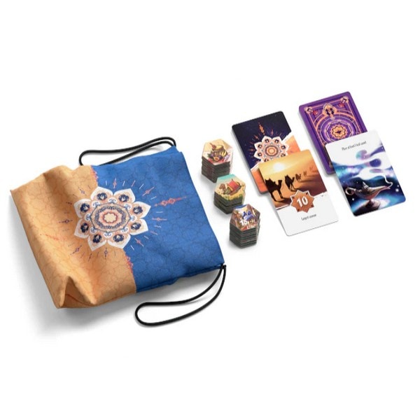 「砂漠を越えて」は、砂漠の中に点在するオアシスや井戸、また領土をめぐるキャラバンの所有権を奪い合うゲームの拡張です。