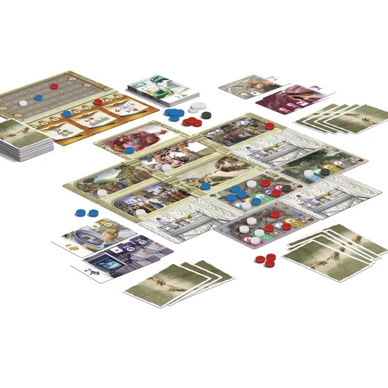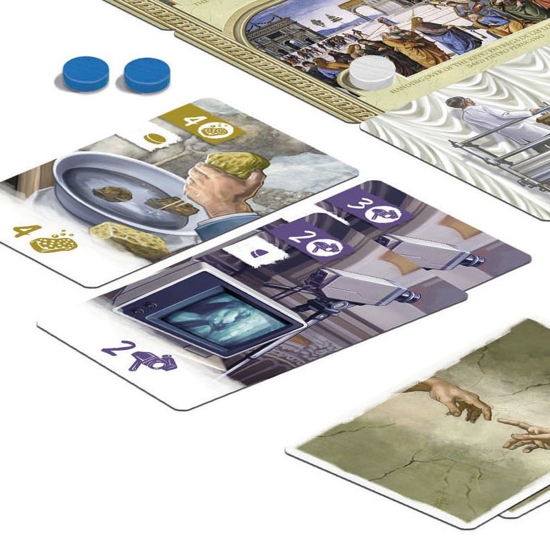 このゲームでは、プレイヤーは壁画修復家として、システィーナ礼拝堂の威厳を蘇らせる緻密な作業に秀でることを競う、手札を効果的に使い、作業の進捗を比べるゲームです。