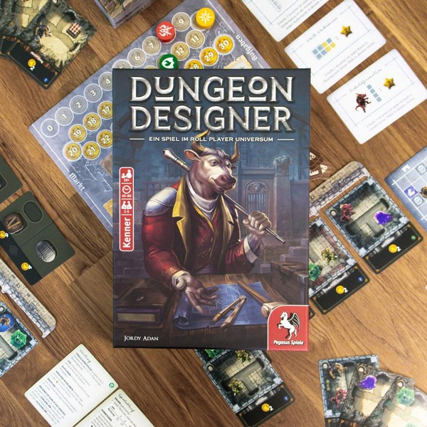 「ダンジョンデザイナー」は、自分だけの危険なダンジョンを作り上げ、建築の達人になる、カードドラフトとダンジョン構築のゲームです。