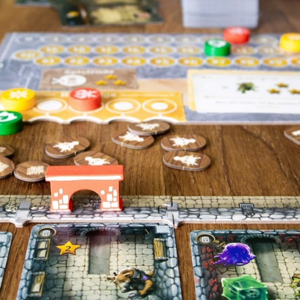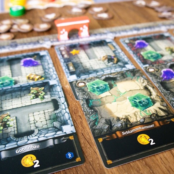 プレイヤーは同時にドラフトを行い、カードをプレイしてダンジョンを拡張していきます。