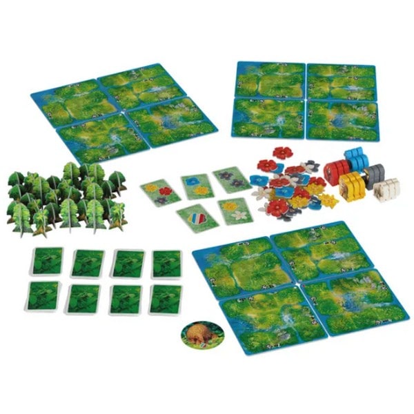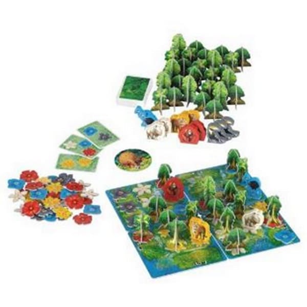 しかもすべてのマス目に同じ色の花が置かれてかつ樹が配置されると完全な生息地となり、花の色に対応した動物が呼び寄せられ豊かな熱帯雨林が育ちます。