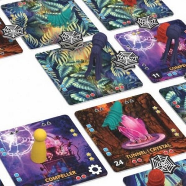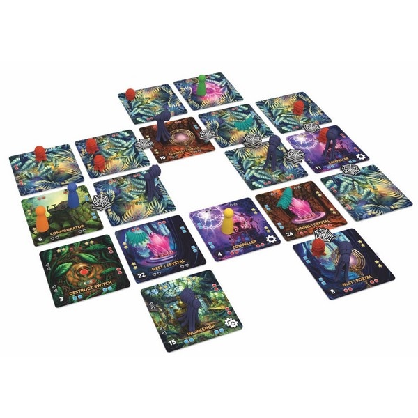 タイルには、ポータル、輝くクリスタル、トンネルなど、様々な地形が描かれています。