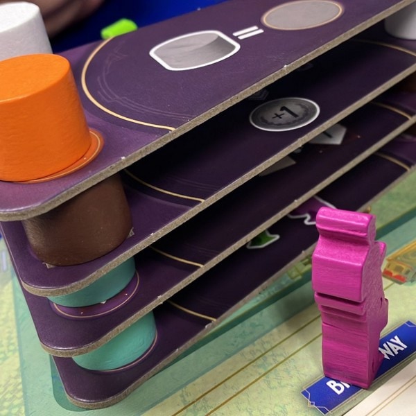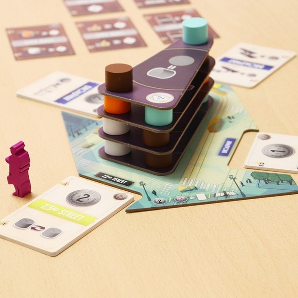 プレイヤーは柱の購入と建築、フロアの建築などの基本アクションを実行し、新聞トークンを獲得・使用することで、ゲームを有利に進めます。
