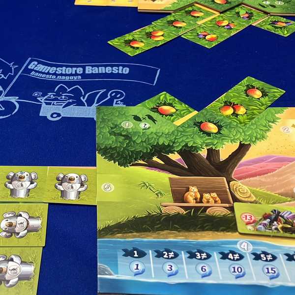 「マンゴーの木の下で」は、オーストラリアの荒野でマンゴーの樹を再生させ、動物たちの憩いの場を作り、またガラクタを掃除してを片付けることを目指すドラフト系ゲームです。