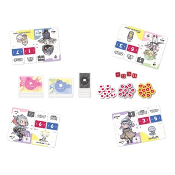ゲームの進行も、配信カードとイベントカードの組み合わせで生じる配信に対し、ダイスにて判定を行います。