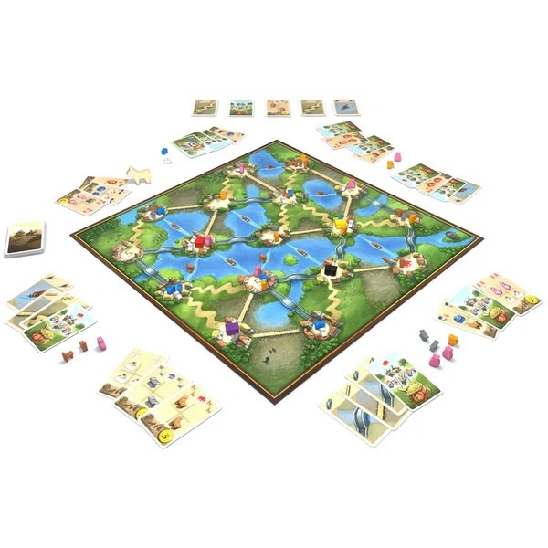 準備として、各プレイヤーはルートカード、物品要求カード、特別な飼料カードを手札に持ち、異なる村から荷車をスタートさせます。