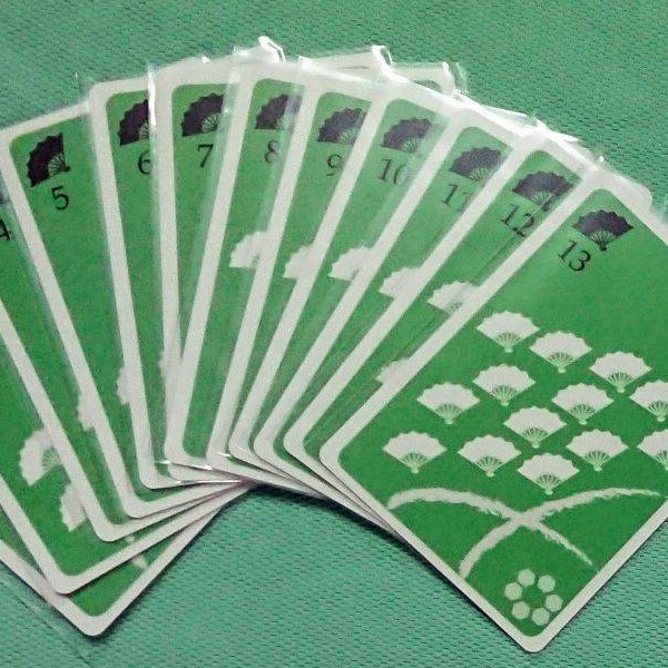 「色映に生へど」は、額面の得点を観ながらプレイするトリックテイキングゲームです。