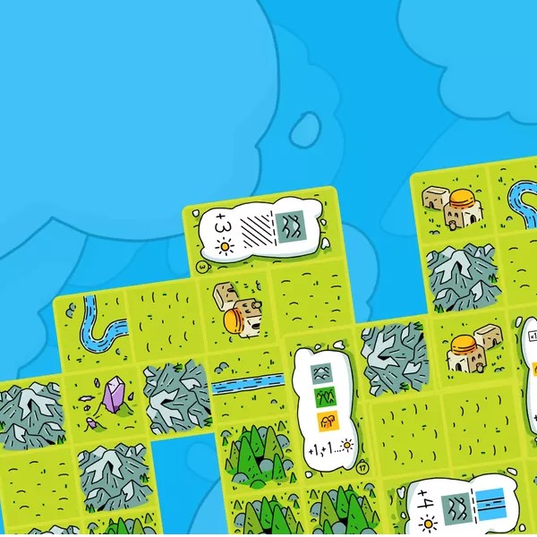 「コンフュージングランド」は2人用のカードゲームで、各プレイヤーは自分だけの奇妙な浮遊風景を作り出します。