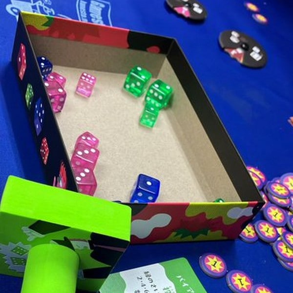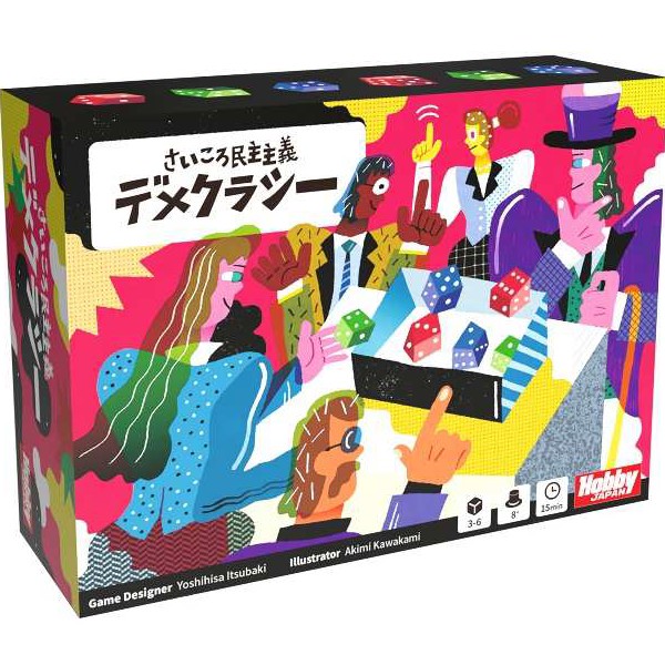 「さいころ民主主義デメクラシー」は、たくさんのサイコロの目を見抜きうまく投票する、サイコロ投票パーティゲームです。
