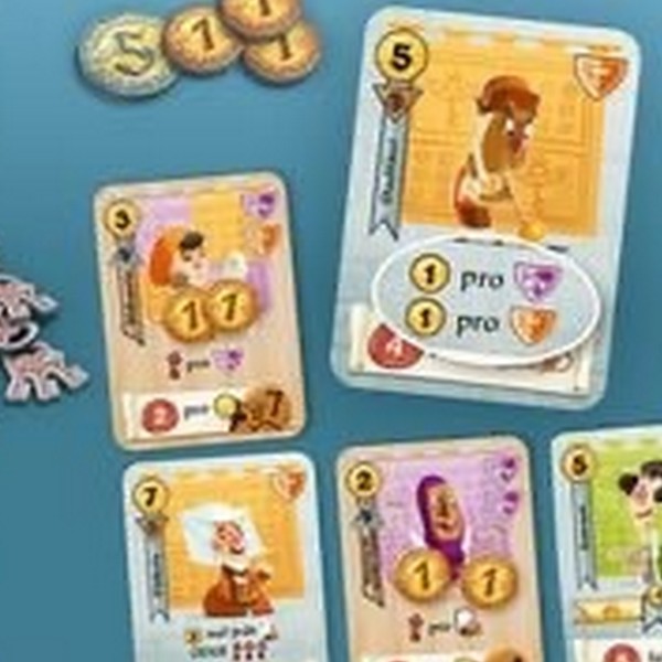 各プレイヤーはコインを消費して、2つの市場から9枚のカードをドラフトし、3x3のカードを並べ、互いに影響し合って即座に効果やゲーム終了時のボーナスを発動させます。