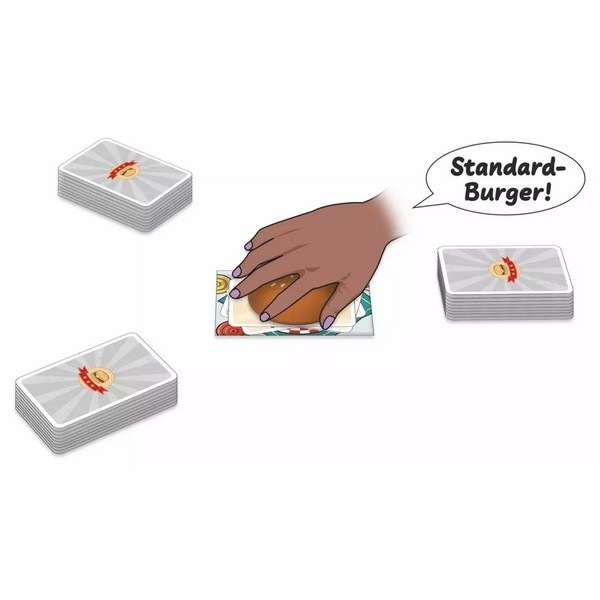 「バーガースラム」では、プレイヤーたちは協力してバーガーを組み立てまするものの、功績を手にするために奪い取るカードゲームです。