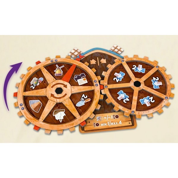 プレイヤーは手番中に、風車ボードのホイールを回転させて行動を選択します。