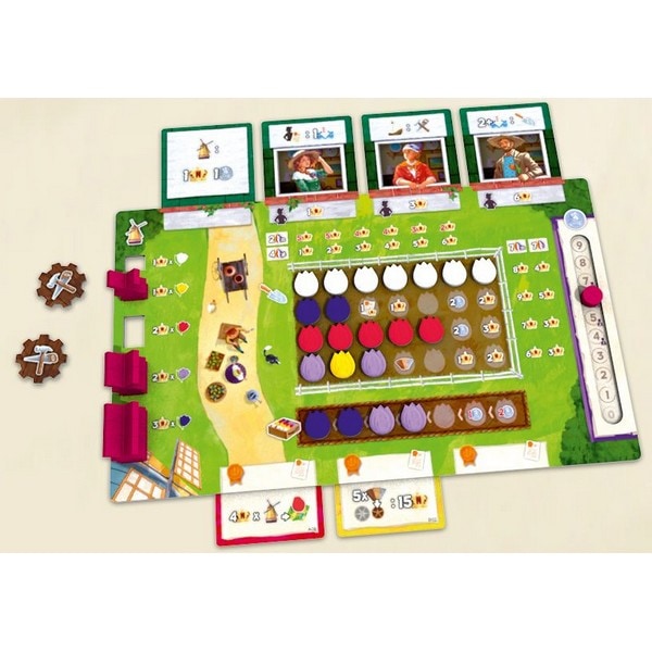 ・畑にチューリップを植え、これによりゲーム終了時に勝利点を獲得します。