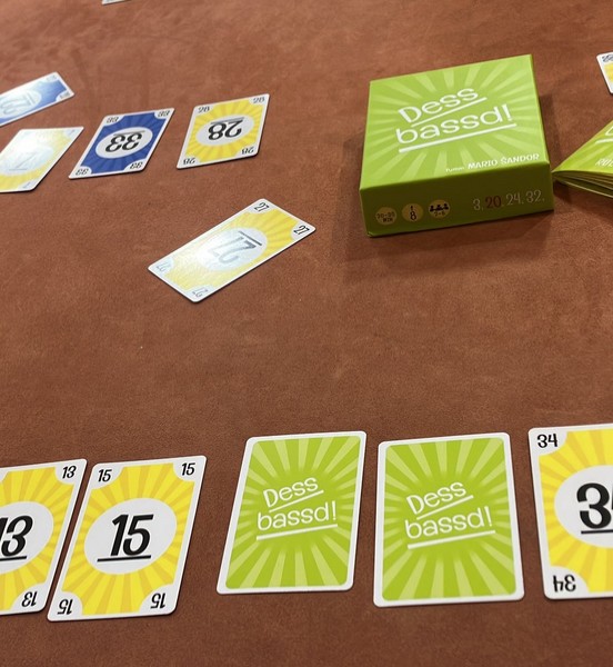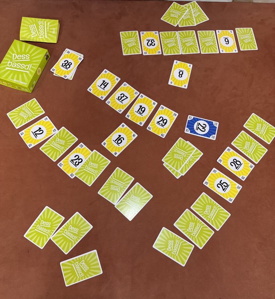 「デズ・バスド」は、自分の場の数字の幅を狭く取り、自分の場の数字の列が昇順になるように並べる、数字だけのトリックテイキングゲームです。