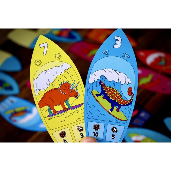 「サーフォサウルスMAX」は、得点を得るために最強の組み合わせのカードを貢献する必要があるカードゲームです。