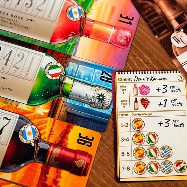 このゲームは、8ラウンドの間にワインボトルを集めてクライアントのセラーを構築します。