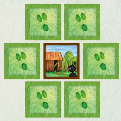 倉庫カードを中央に置き、必要な枚数を抜いた農場カードをよく切って、6枚をその周りに置きます。