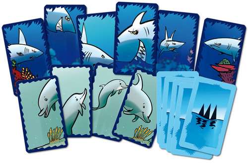 「ごきぶりポーカー」はカードが8種類,「ごきぶりサラダ」は4種類ときて,この「サメ警報」はたったの2種類!どうやってゲームを成り立たせているのかも知りたくて購入しました。