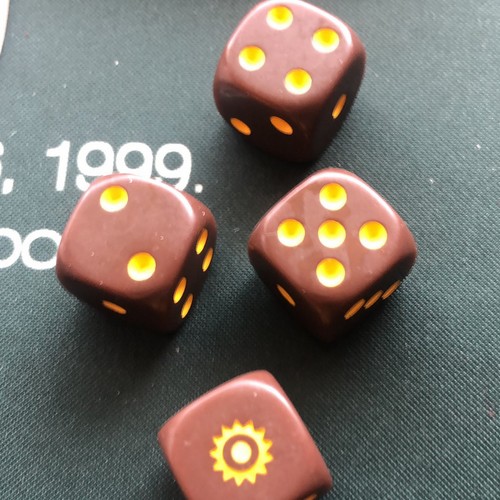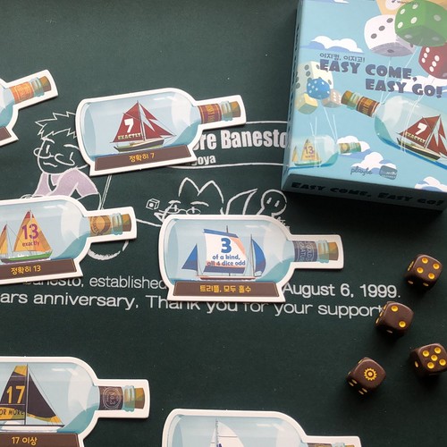 分かりやすいダイスゲー。3枚目のタイルを取って取られてを繰り返して、なかなか終わらない時がありますけどね。同じKnizia作品なら、個人的には『コード破り』を推しますが、説明の容易さはこちらが上。
