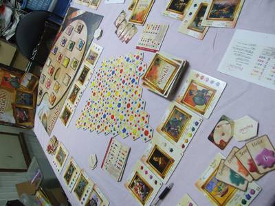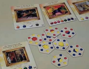 絵画をテーマにしたゲームはいくつもありますが その中でも特にカラフルさでは群を抜いています。 大きめタイルに描かれた名画やパレット型のボードなど 目を引くことでしょう。 ただ名画の作品情報の文字が小さいのが珠にキズですねw ゲーム性はパズルチックに絵の具を集め組み合わせていきながら その絵画に必要な絵の具を揃えていく比較的シンプルなものなので ビギナーにもとっつきやすいでしょう。 絵に興味がある人をゲームに誘うのにはもってこいのゲームといえるのではないかと。
