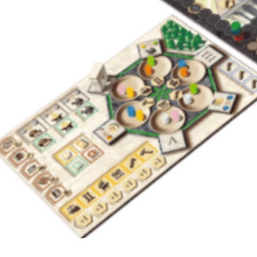各プレイヤーは、軍事指導者コマとプレイヤーコマを野営地と労働者宿舎に別々に置き、残りはプレイヤーマットの保管置き場に置きます。