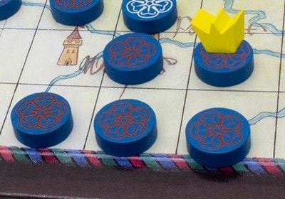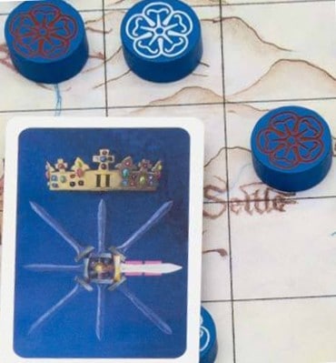 相手の色の薔薇マーカーを自分の色の薔薇マーカーにひっくり返すことのできる「戦士カード」が4枚ずつあるので,それをいかに効果的に使えるかも勝敗の大きく関わってきます。