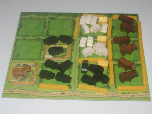家族を養う為の食料を調達しない分、動物コマがどんどん貯まるので、牧場がにぎやかになるのが楽しい。キテレツな牧場を作ることで初心者相手にも容易に点数を調整可能。先日は自然に負けることでボドゲ仲間を増やせました。